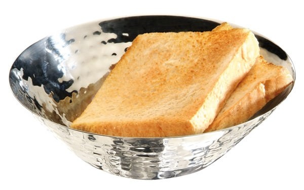Okrągła miska na owoce, wykonana z polerowanej stali nierdzewnej o oryginalnych wytłoczeniach. Można myć w zmywarkach i sztaplować.