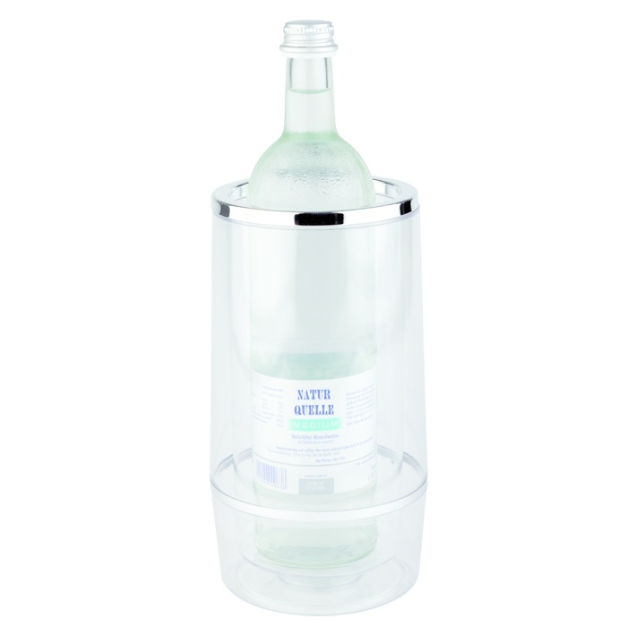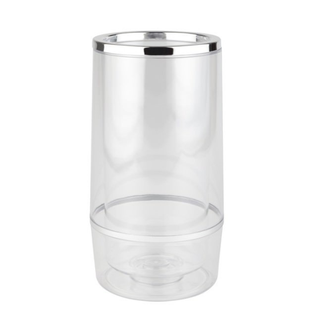 Pojemnik termoizolacyjny z podwójną ścianką. Utrzymuję niską temperaturę przez bardzo długi czas. Wykonany z przeźroczystego polistyrenu, ozdobne chromowane krawędzie. Średnica wewnątrz pojemnika wynosi 100 mm. W ozdobnym opakowaniu. Nie zaleca się mycia w zmywarkach.