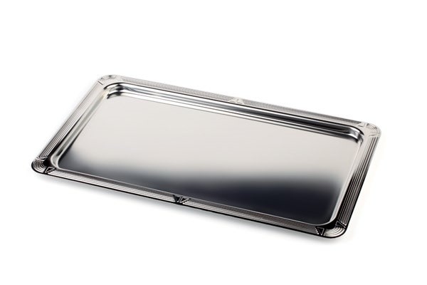 Taca do serwowania wykonana ze stali nierdzewnej polerowanej z dekoracyjnym rantem. Można myć w zmywarkach i sztaplować.