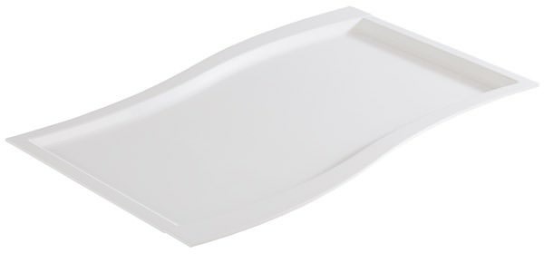 Taca z serii Sinus, wykonana z białej melaminy. Charakteryzuje się bardzo oryginalnym wzornictwem, a zarazem funkcjonalnością. Pozwala w ciekawy sposób wyeksponować dania, przystawki, sałatki i wiele innych potraw. Można myć w zmywarkach i sztaplować. Wytrzymuje temperaturę od -30 do +70 stopni Celsjusza.