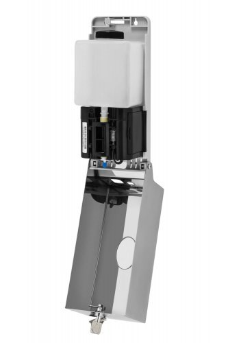 Wykonany ze stali nierdzewnej automatyczny dozownik mydła w płynie. Jest wyposażony w zbiornik wielokrotnego napełniania i wziernik poziomu mydła. Dozuje mydło automatycznie, po podstawieniu dłoni pod sensor umieszczony w dolnej części dozownika. Zasięg czujnika 3-10 cm.