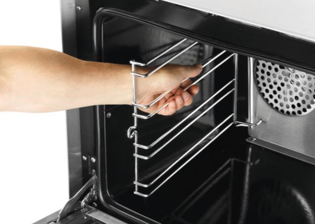 Komora pieca wykonana jest z materiału emaliowanego i posiada zaokrąglone krawędzie, co ułatwia czyszczenie. Prowadnice są wyjmowane, co zwiększa komfort użytkowania oraz ułatwia konserwację. Dzięki podwójnemu przeszkleniu drzwi, urządzenie jest bezpieczne w obsłudze oraz umożliwia stały podgląd przygotowywanych potraw.