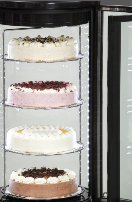 Witryna cukiernicza okrągła, 72 L, od 2°C do 10°C, nastawna, czarna