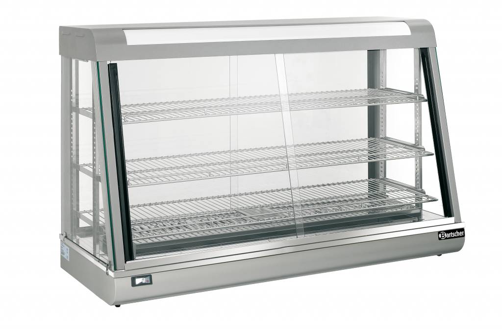 Nablatowa witryna grzewcza 373 L, 3-poziomowa, 2,20 kW, od 30 do 90 °C, z szybą skośną, szara