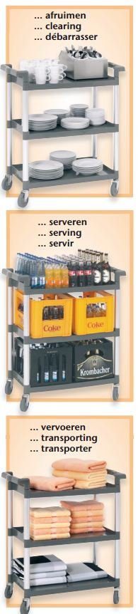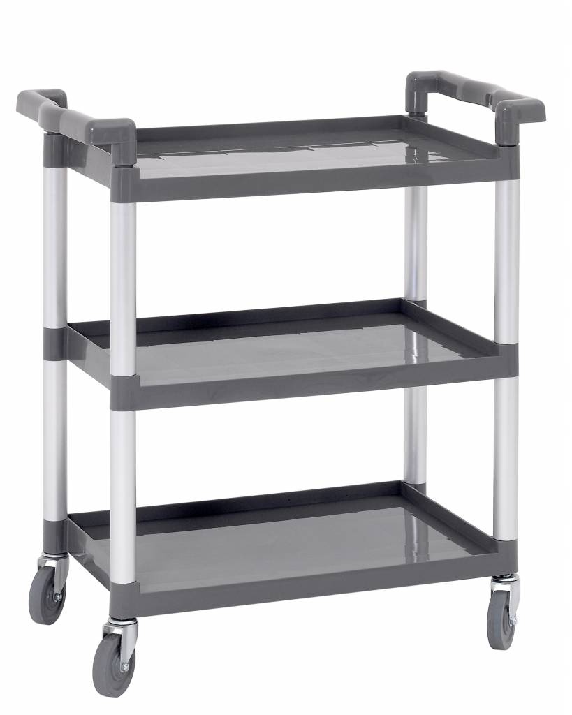 Wózek do serwowania z 3 poziomami do szybkiego, efektywnego i bezproblemowego transportu.