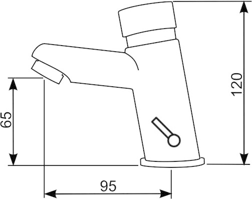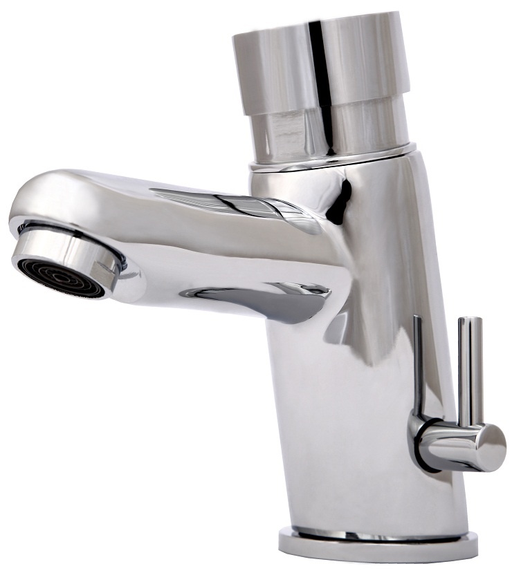 Samozamykająca się bateria umywalkowa stojąca z bocznym mieszaczem wody zimnej i gorącej. Czas wypływu wody ok. 5 sekund. W komplecie dwa elastyczne wężyki przyłączeniowe w oplocie stalowym oraz dwa zawory zwrotne 3/8″.