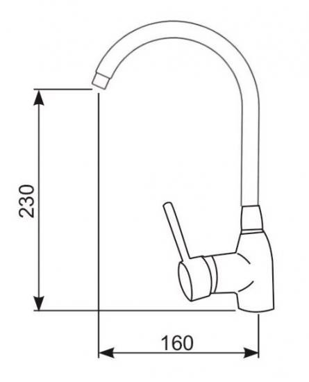 Bateria zlewozmywakowa chromowana, stojąca jednouchwytowa z mieszaczem ceramicznym Ø 40 mm i wylewką obrotową 160 mm, wysokość 230 mm