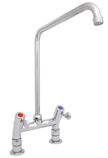 Bateria zlewozmywakowa stojąca dwuootworowa z pokrętłami i obrotową wylewką 250 mm, wysokość 380 mm