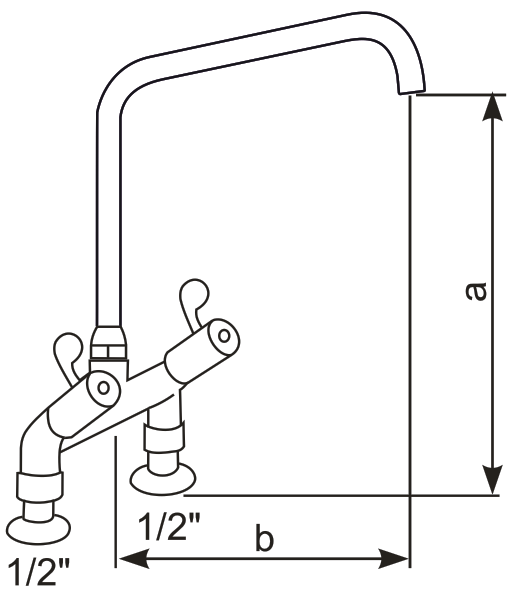 Bateria zlewozmywakowa stojąca dwuotworowa, z pokrętłami. Wylewka obrotowa. Głowice baterii ceramiczne ćwierćobrotowe. Średnica króćców przyłączeniowych wody zimnej i gorącej – 1/2″. Rozstaw króćców przyłączeniowych – 155 mm.