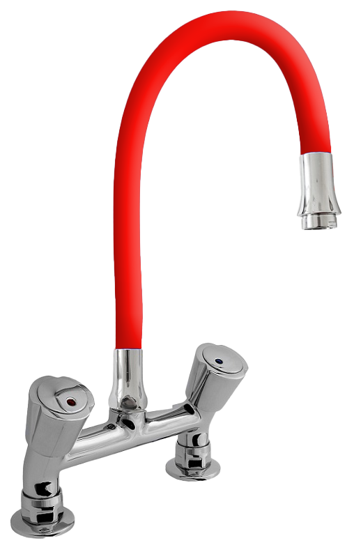 Bateria zlewozmywakowa stojąca dwuootworowa z elastyczną wylewką o długości 530 mm, czerwona