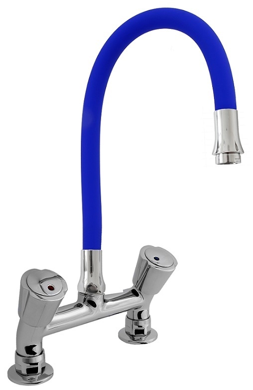Bateria zlewozmywakowa stojąca dwuootworowa z elastyczną wylewką o długości 530 mm, niebieska