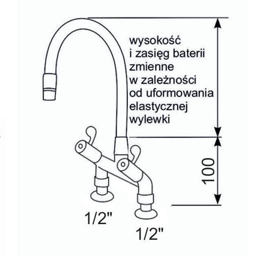 - Bateria zlewozmywakowa stojąca, dwuotworowa z pokrętłami.