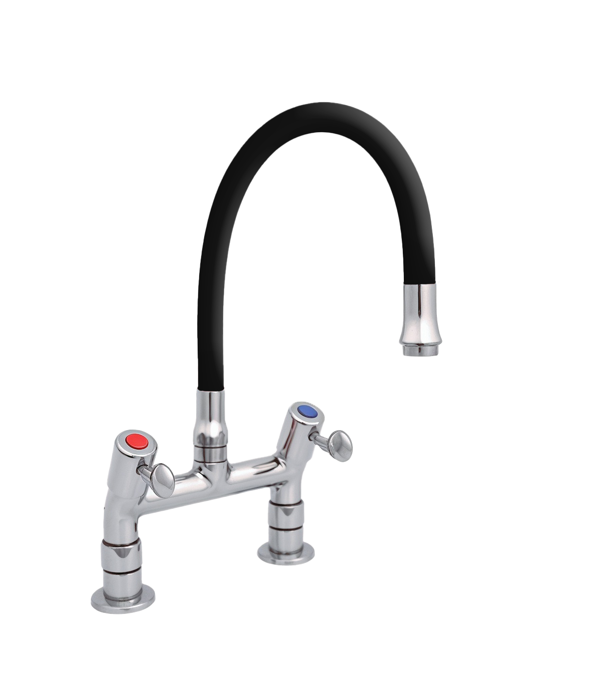 Bateria zlewozmywakowa stojąca dwuootworowa z elastyczną wylewką o długości 530 mm, czarna