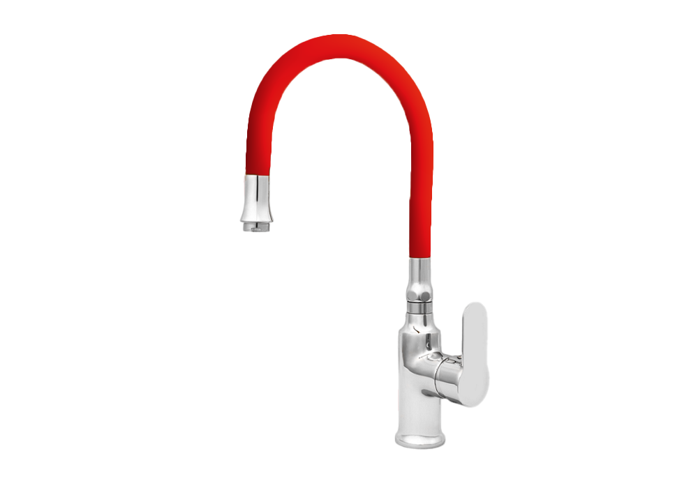 Bateria zlewozmywakowa stojąca jednootworowa, jednouchwytowa z elastyczną wylewką o długości 530 mm, czerwona
