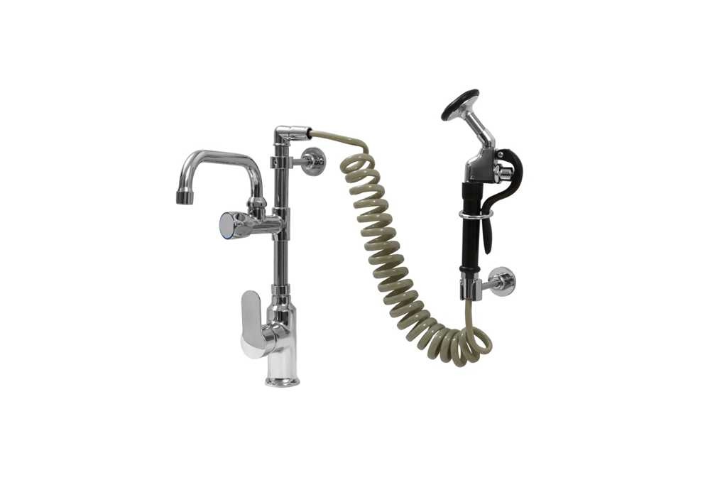 Bateria zlewozmywakowa stojąca jednouchwytowa ze spryskiwaczem, wylewką, mieszaczem i wężem ciśnieniowym