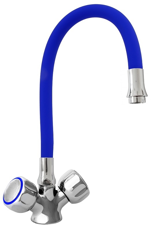 Bateria zlewozmywakowa stojąca z pokrętłami z elastyczną wylewką o długości 530 mm, niebieska