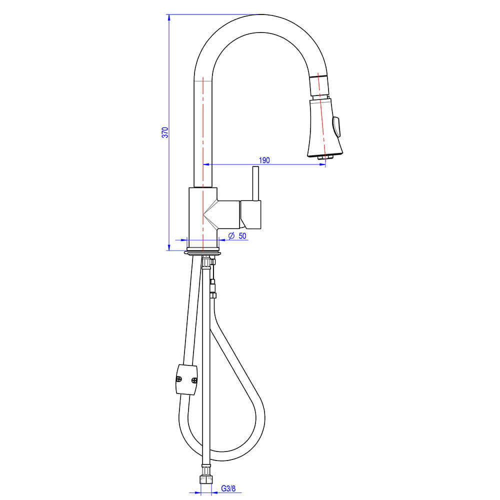 Bateria zlewozmywakowa z wyciąganym prysznicem, H 370 mm