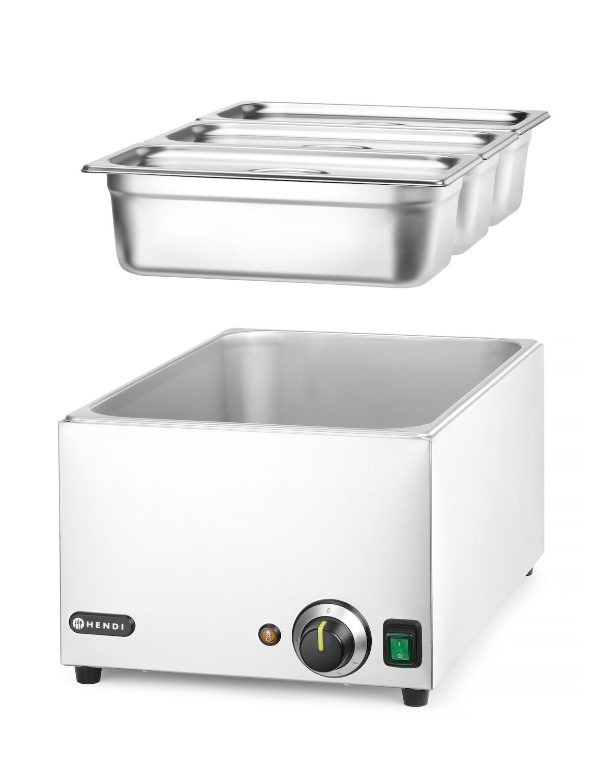 - Zestaw zawiera: 1 bemar HENDI RANGER + 3 pojemniki GN 1/3 o wysokości 100 mm z pokrywą.