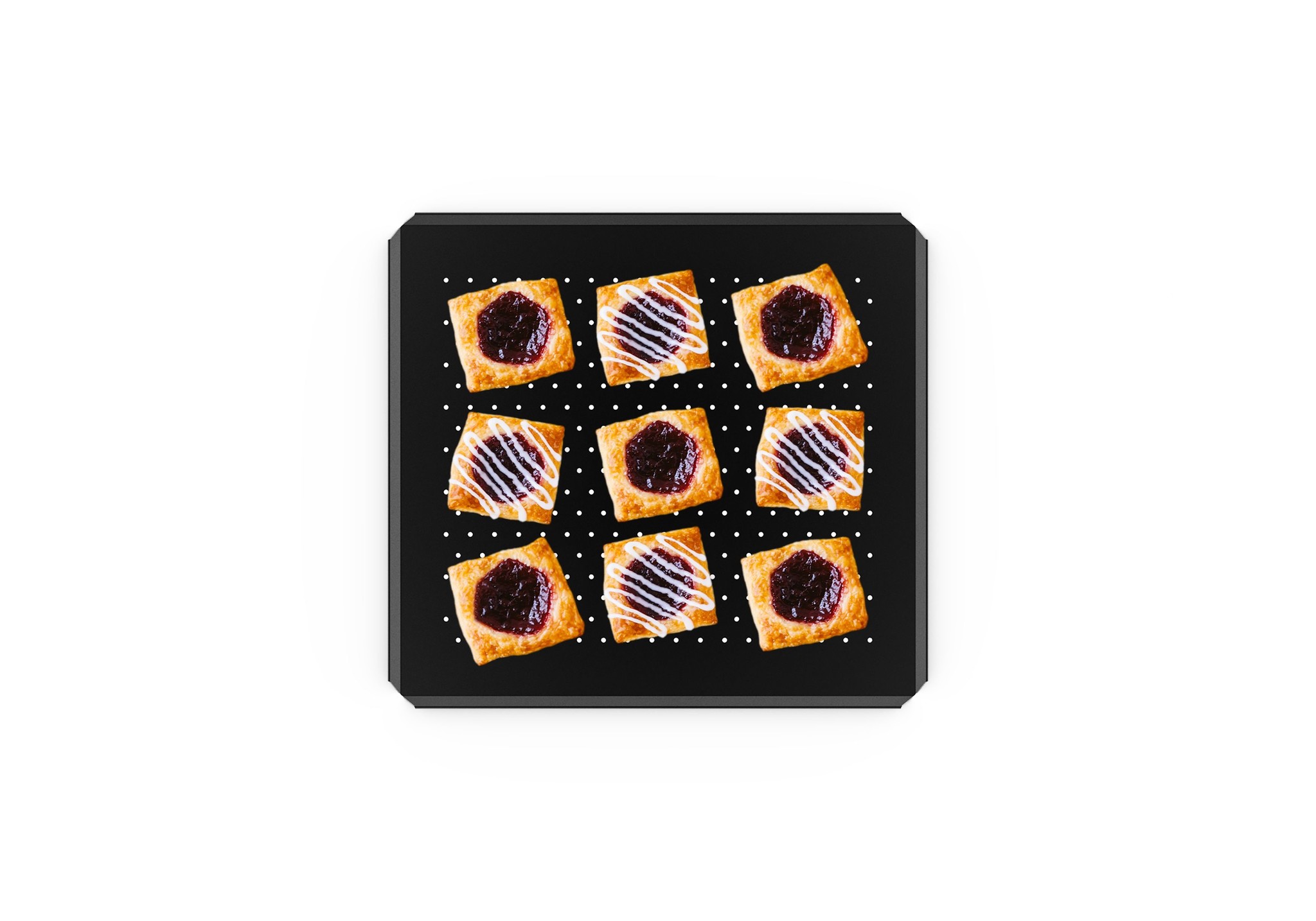 Aluminiowa blacha perforowana nieprzywierająca do wyrobów cukierniczych i piekarniczych.Pasuje do pieców: Cheftop Mind.MapsDane techniczne