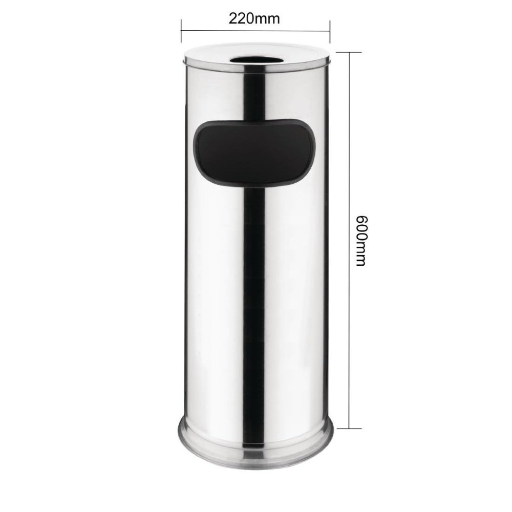 Stylowa popielnica z koszem na śmieci. Wykonano ze stali nierdzewnej 18/0, która zapewnia wytrzymałość i elegancki wygląd. Kosz o pojemności 18 litrów zapewnia wystarczająco dużo miejsca na śmieci, więc kosza nie trzeba będzie często opróżniać.