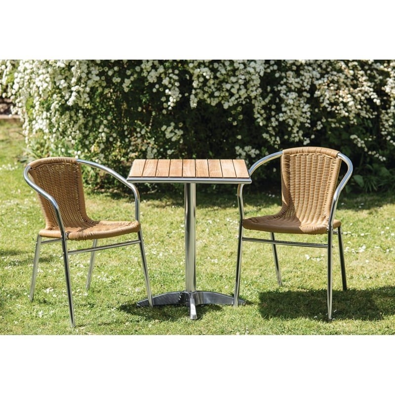 Piękny, jesionowy blat z wytrzymałą, ciężką podstawą. Doskonale się sprawdzi na świeżym powietrzu. Kompaktowy, ale wystarczający dla 2 gości, idealny do maksymalnego wykorzystania mniejszych przestrzeni. Blat został polakierowany, ale powinien być regularnie zabezpieczany olejem (np. olejem tekowym, kod produktu DL476).