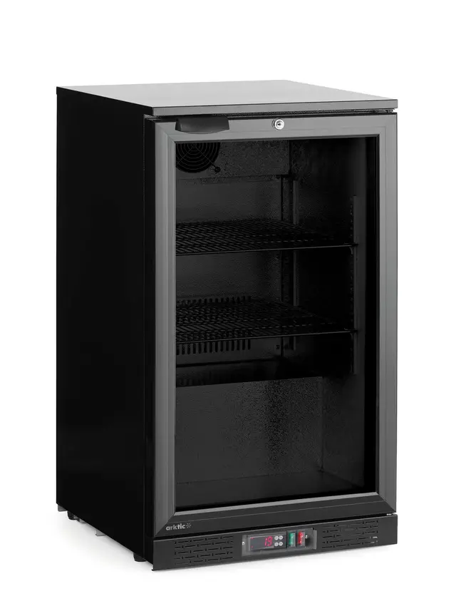 Lodówka barowa ARKTIC to profesjonalne urządzenie chłodnicze przeznaczone do przechowywania i ekspozycji napojów w barach, restauracjach, hotelach, kawiarniach oraz strefach bufetowych. Kompaktowe wymiary oraz nowoczesny, czarny design sprawiają, że lodówka doskonale wpisuje się w zaplecze gastronomiczne i przestrzeń sprzedażową.
