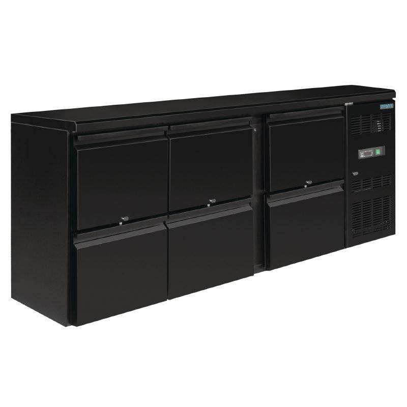 Chłodziarka barowa z 6 szufladami, od 0 °C do 10 °C, 536 L, czarna