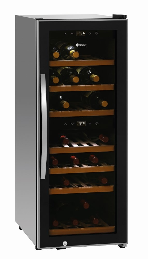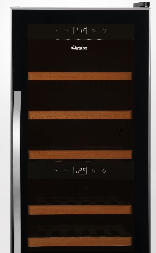 Wysokiej jakości chłodziarka do wina – dzięki stylowemu i eleganckiemu designowi oraz cichej pracy sprężarki – doskonale nadaje się do barów i restauracji. Obie oddzielnie regulowane strefy temperaturowe oraz szklana szyba z filtrem UV gwarantują optymalne przechowywanie i prezentację białego oraz czerwonego wina.