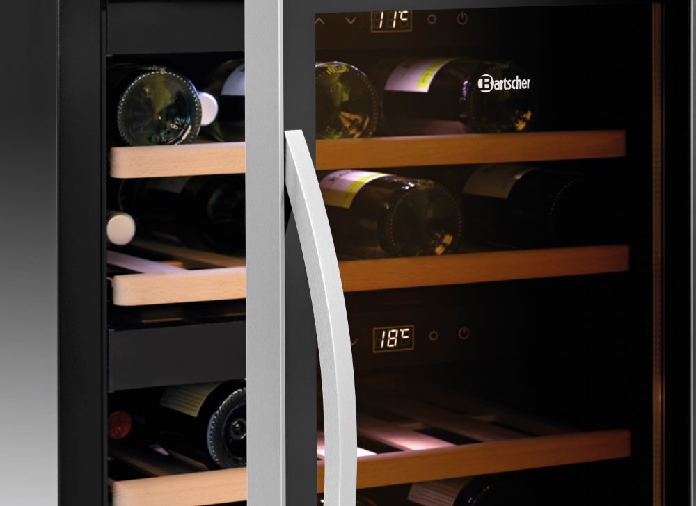Wysokiej jakości chłodziarka do wina – dzięki stylowemu i eleganckiemu designowi oraz cichej pracy sprężarki – doskonale nadaje się do barów i restauracji.