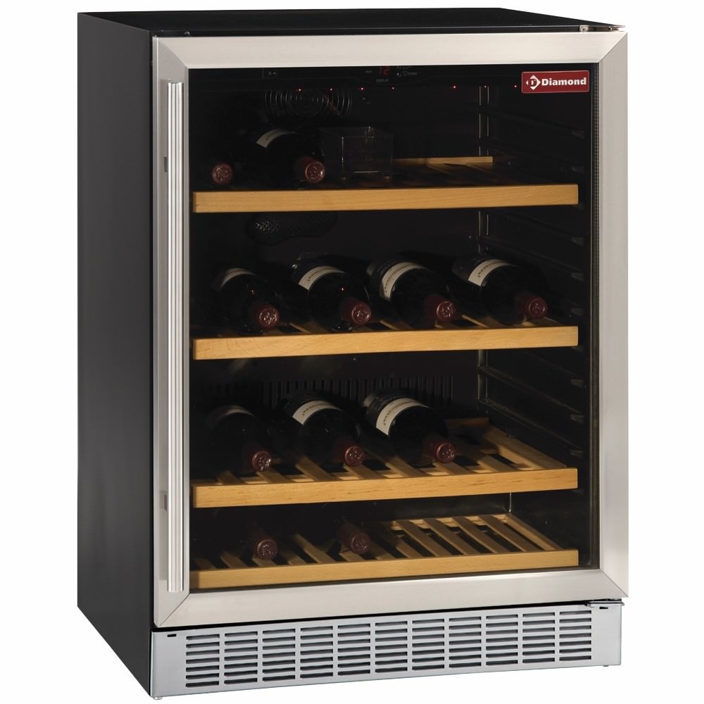 Chłodziarka na wino podblatowa, 1-drzwiowa, 160 L, 45 butelek, od 5 °C do 18 °C, drzwi uchylne, czarna