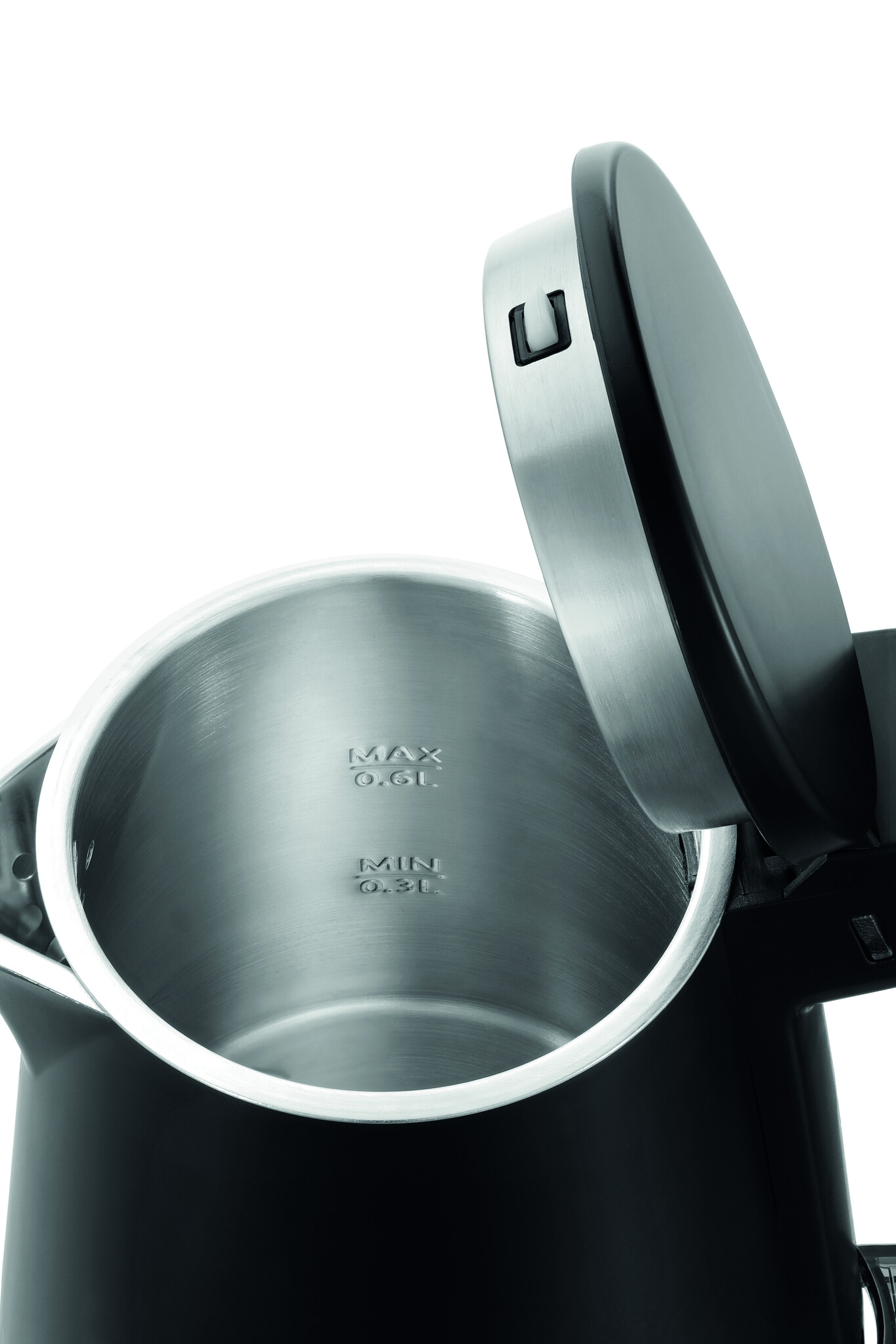 Mimo że najmniejszy spośród małych, nie można go nie docenić: Czajnik o pojemności 0,6 litra jest mały i praktyczny. Idealnie sprawdzi się w użyciu na niewielkiej przestrzeni, a także w pokojach hotelowych lub aneksach kuchennych.Podmiot odpowiedzialny (GPSR):