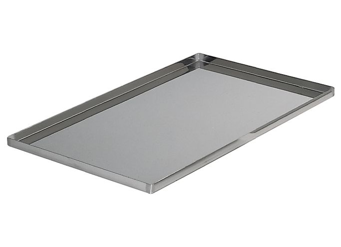 Wykonana z wysokopolerowanej stali nierdzewnej taca 4-rantowa do serwowania wypieków. Grubość: 1 mm.