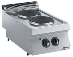 Profesjonalna kuchenka elektryczna przeznaczona do intensywnego użytkowania w lokalach gastronomicznych, takich jak restauracje, bary i stołówki. Wyposażona w dwie niezależne żeliwne płyty grzewcze o średnicy 230 mm każda, umożliwia szybkie i wygodne przygotowywanie potraw. Obudowa wykonana ze stali nierdzewnej AISI 304 zapewnia trwałość, odporność na korozję i łatwe utrzymanie czystości. Tłoczony blat roboczy o grubości 15/10 mm zwiększa wytrzymałość i nadaje estetyczny wygląd.