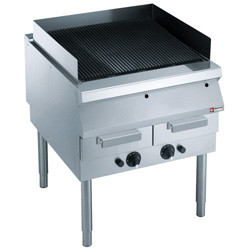 Wolnostojąca płyta grillowa gazowa wykonana z kwasoodpornej stali nierdzewnej AISI 304. Urządzenie posiada żeliwny ruszt, palniki ze stabilnym płomieniem, pokrętła regulacyjne, wyjmowane ranty i szuflady na tłuszcz. Płyta posiada ryflowaną powierzchnię grzewczą.