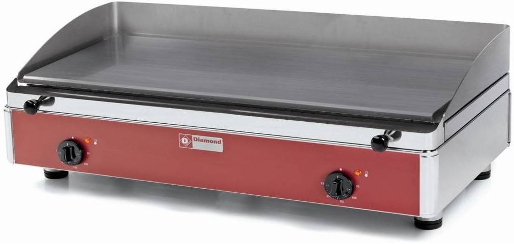 Powierzchnia grzewcza o wymiarach 755 x 400 mm wykonana jest z 15-milimetrowej stali o wysokiej przewodności cieplnej, co gwarantuje równomierne nagrzewanie i odporność na odkształcenia. Gładka płyta została zespawana po całym obwodzie, co ułatwia utrzymanie czystości i zapobiega gromadzeniu się resztek żywności.