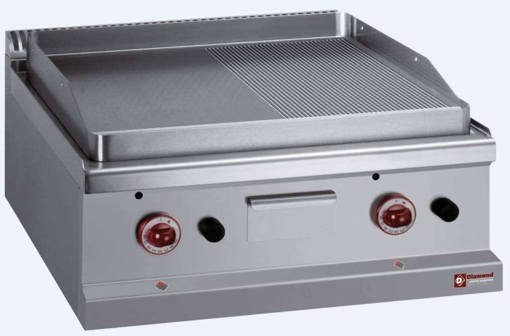 - Płyta o bardzo dużym przewodnictwie, ze spawanymi krawędziami, aby zapobiec wyciekom. Taca ociekowa z przodu urządzenia.