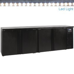 Chłodziarka barowa z 4 drzwiami uchylnymi, od 1 °C do 8 °C, 783 L, czarna