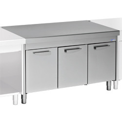 Funkcjonalny segment linii Self 800, który łączy trwały blat roboczy z zamkniętą przestrzenią do przechowywania. Przednia szafka z drzwiami skrzydłowymi umożliwia higieniczne przechowywanie naczyń, pojemników i akcesoriów gastronomicznych, zapewniając porządek oraz estetykę stanowiska pracy.
