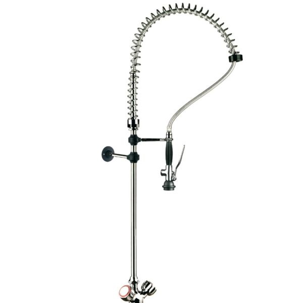Spryskiwacz DOC – 1 + to podstawowe narzędzie każdej profesjonalnej zmywalni. Umożliwia wstępne spłukanie zanieczyszczeń z garnków i innych akcesoriów kuchennych. Spryskiwacz ciśnieniowy ze sterowaniem dźwigniowym oraz z baterią montowaną do stołu roboczego ze zlewem. Posiada nierdzewny przewód ciśnieniowy wraz ze sprężyną wyrównującą, które umożliwiają łatwe operowanie spryskiwaczem. Stabilność utrzymują dwa uchwyty – ścienny i uchwyt spryskiwacza.