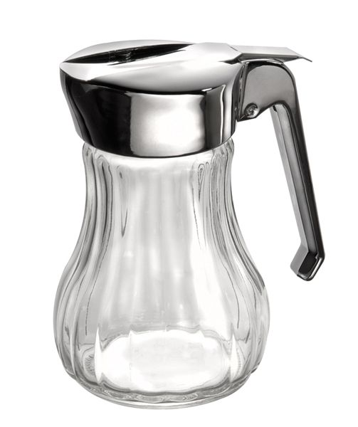 Szklany dozownik do mleka lub śmietanki, z pokrywą wykonaną ze stali nierdzewnej. Można myć w zmywarkach.