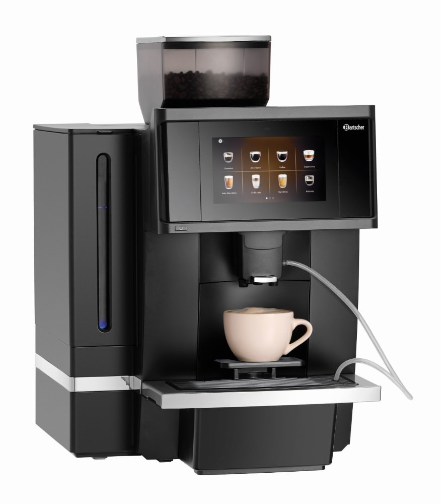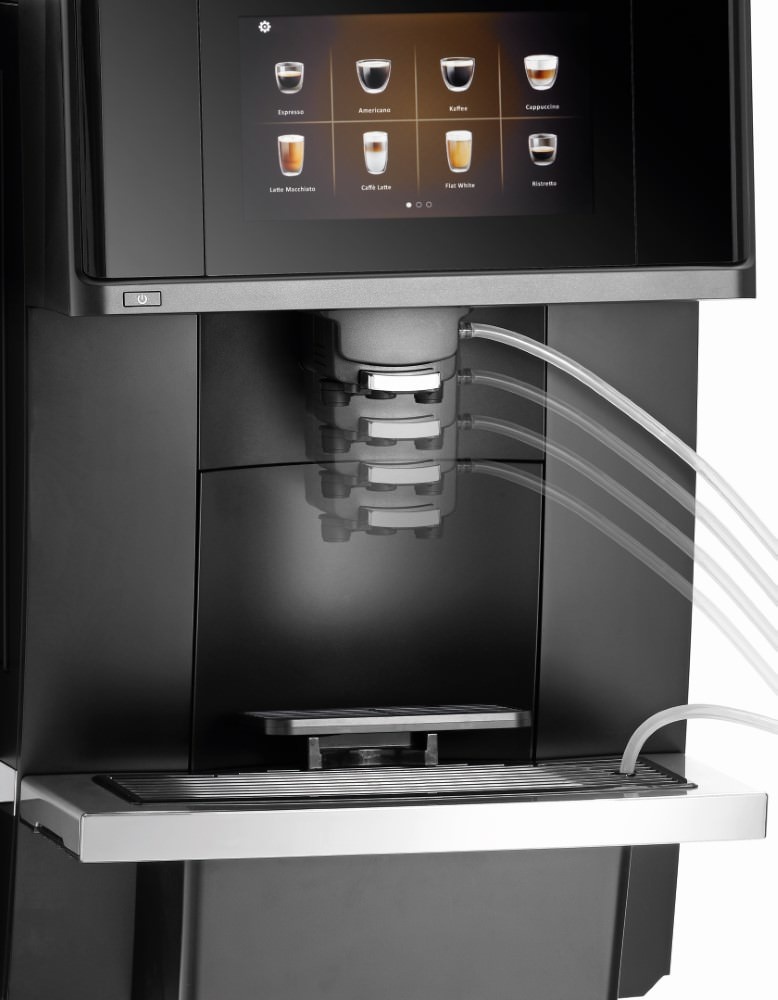 Możliwość indywidualnego zaprogramowania nawet do 23 przepisów kawowych, stałe przyłącze wody oraz zbiornik na wodę o pojemności 6 litrów to cechy, które wyróżniają ten niezwykle przemyślany wariant ekspresu do kawy KV1. Innymi słowy: najwyższa rozkosz delektowania się smakiem i aromatem kawy przy jednocześnie prostej, intuicyjnej obsłudze. 7-calowy wyświetlacz reklamowy z możliwością indywidualnego zapisu nagrań wideo w połączeniu z eleganckim designem – dzięki w pełni zautomatyzowanej obsłudze – zachęca do delektowania się świeżo przyrządzonym espresso, cappuccino, latte macchiato itp.