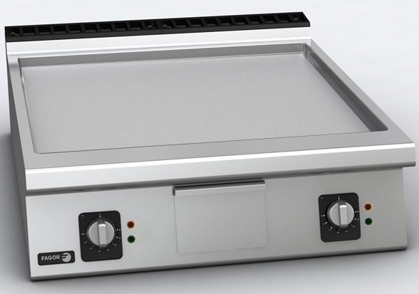 Płyta grillowa gładka. Temperatura płyty sterowana termostatem w zakresie temperatur 120–350°C. Zbiornik tłuszczu o dużej objętości znajdujący się pod płytą grillową. Płyta pokryta 50-mikronową warstwą chromu; zmniejszona emisja ciepła do otoczenia, lepszy komfort pracy, produkty grillowane nie przywierają do płyty.Podmiot odpowiedzialny (GPSR):