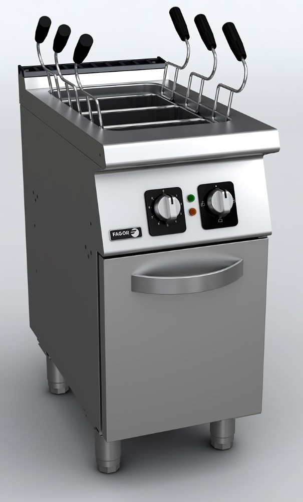 Blaty wykonane ze stali nierdzewnej AISI-304 o grubości 1,5 mm. Komora ze stali nierdzewnej AISI-316L o grubości 1,5 mm wbudowana w blat powierzchni. Misa warnika jest napełnia a przez wlotowy zawór elektromagnetyczny: napełnianie średnie i szybkie. Odpowietrzenie przez mechaniczny zawór kulowy, odporny na wysokie temperatury. Bezpieczeństwo pracy dzięki specjalnej podstawie i systemowi zapobiegającemu infiltracji wody. Dostęp do komponentów od przodu. Urządzenia z ochroną przed wodą klasy IPX5. Elementy grzewcze ze stali nierdzewnej AISI 304 umieszczone wewnątrz komory do bezpośredniego podgrzewania wody. Ogrzewanie kontrolowane przez regulator energii. Komora o wymiarach GN-1/1, o pojemności 40 litrów. Standardowe wyposażenie: trzy kosze typu 1/3.Podmiot odpowiedzialny (GPSR):