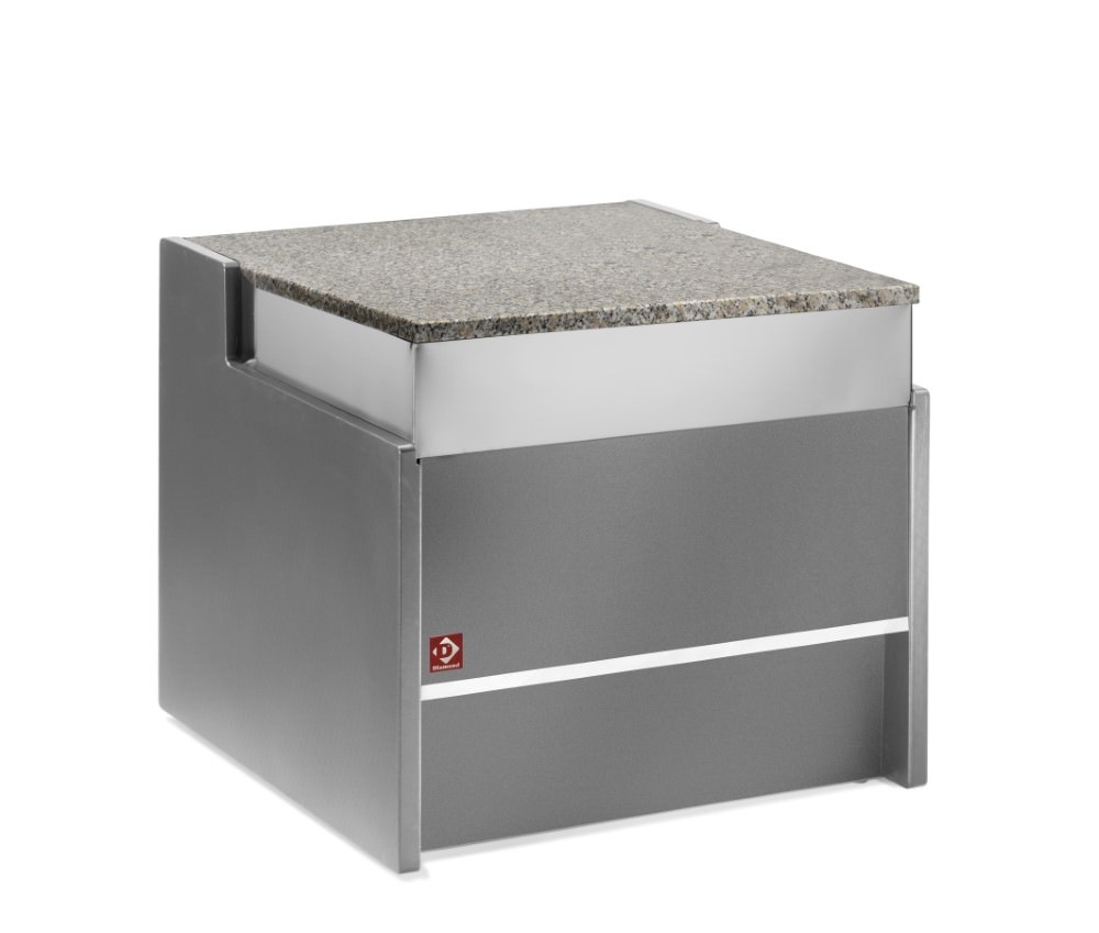Moduł przeznaczony do wyposażenia stanowisk sprzedażowych w gastronomii, sklepach i strefach samoobsługowych. Konstrukcja łączy funkcjonalność z estetyką – gładki blat roboczy wykonano z odpornej na korozję stali nierdzewnej AISI 304, co ułatwia utrzymanie czystości i zapewnia trwałość przy intensywnym użytkowaniu.