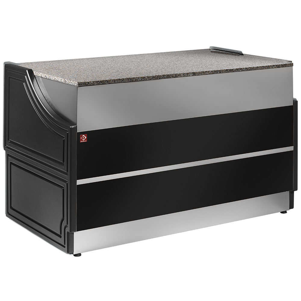 Wykończenie w kolorze czarnym z kontrastującymi elementami inox podkreśla nowoczesny charakter produktu, a boczne frezowania nadają mu elegancki wygląd. Stanowisko idealnie komponuje się z nowoczesnymi wnętrzami sklepów, niezależnie od ich wielkości.