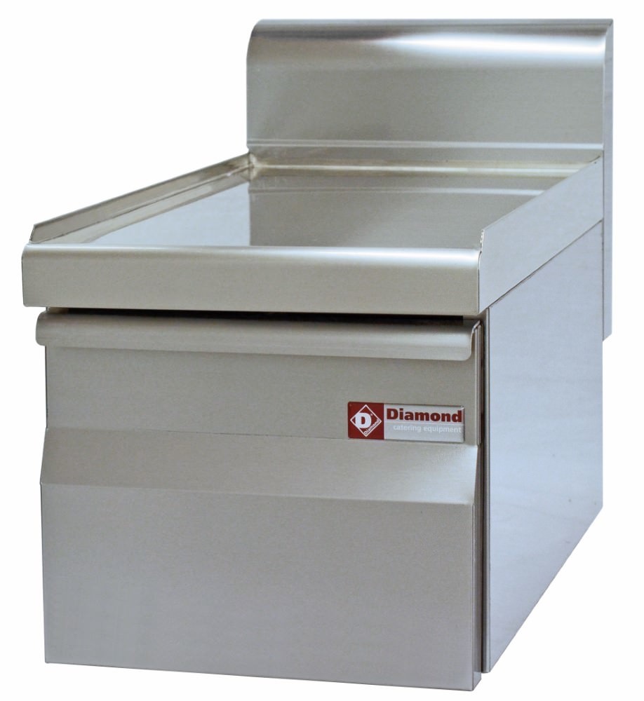 Wykonany w całości z wysokogatunkowej stali nierdzewnej AISI 304, moduł oferuje gładką powierzchnię roboczą łatwą do utrzymania w czystości oraz dużą odporność na intensywne użytkowanie. Na froncie znajduje się wysuwana szuflada o wymiarach 205 × 470 × h143 mm, osadzona na prowadnicach, co zapewnia płynny wysuw oraz szybki dostęp do zawartości.