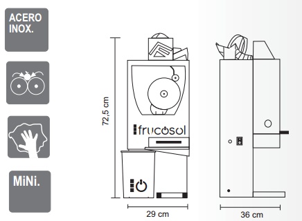 Jest jedną z najbardziej wszechstronnych, kompaktowych i funkcjonalnych, automatycznych wyciskarek do pomarańczy, którą można znaleźć na rynku. Dostosowana do lokali, w których przestrzeń jest ograniczona, ale w których ma być podawany sok pomarańczowy najwyższej jakości w higieniczny sposób.