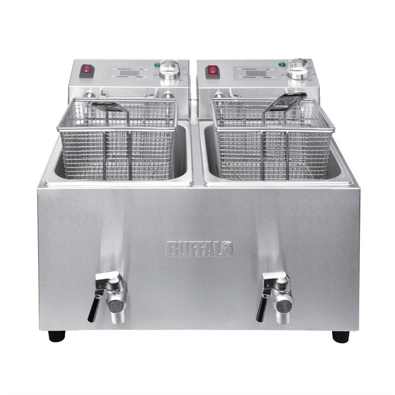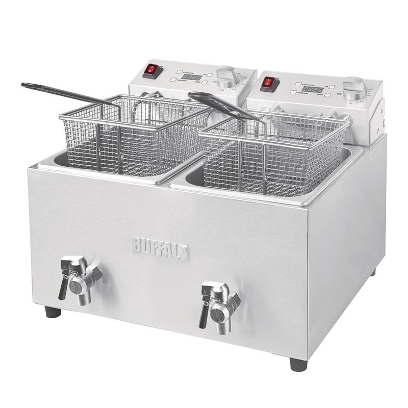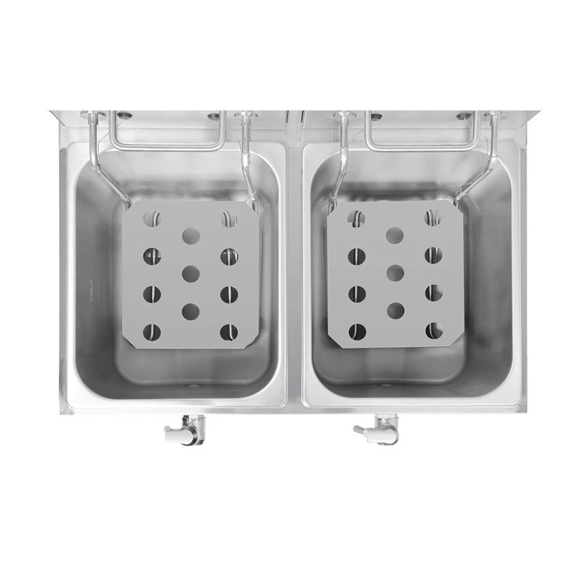 Praktyczna, nablatowa frytkownica i wieczkiem ze stali nierdzewnej. Frytkownica posiada oddzielne kosze z osobnym sterowaniem, co zapobiega zakażeniom krzyżowym i oszczędza energię, kiedy jest mniej klientów. Wyposażona w wyłącznik bezpieczeństwa termicznego pomaga uniknąć doprowadzenia oleju do temperatury zapłonu i przegrzania.