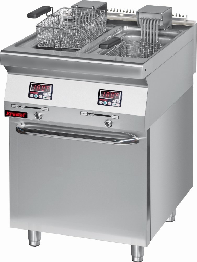 Frytownica elektryczna 2-komorowa stacjonarna 2 x 8 L, 16 kW na podstawie szafkowej zamniętej