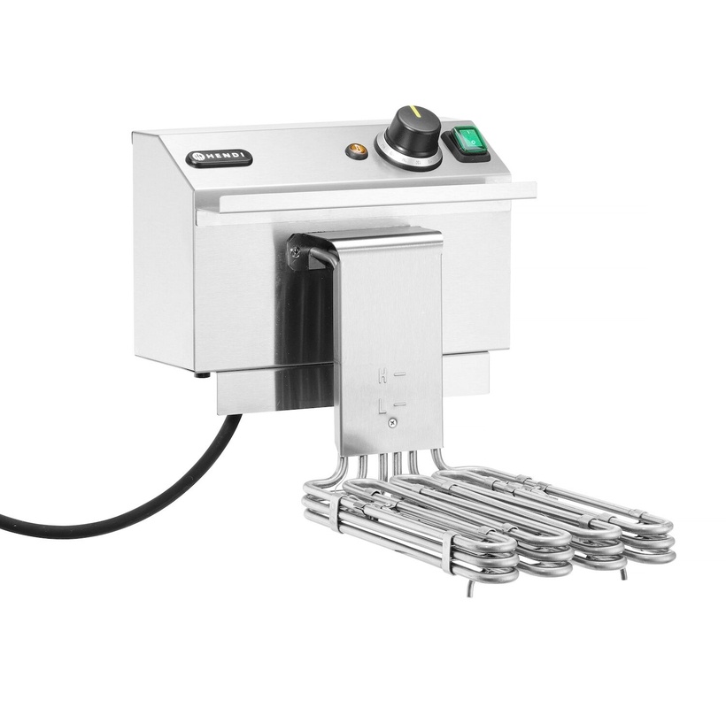 Bardzo wydajna frytownica 400 V Wydajny element grzewczy o mocy 6600 W szybko nagrzewa tłuszcz nawet po włożeniu zamrożonych produktów, dzięki czemu smażona żywność jest bardziej chrupiąca Dostarczana bez wtyczki, wymagana instalacja przez osobę z uprawnieniamiPodmiot odpowiedzialny (GPSR):